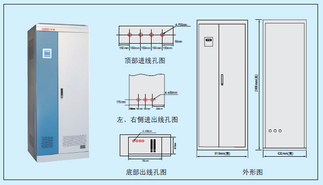 说明: 安装形式、进出线(上、下)、单路/双路供电、输入输出相数、备用时间、消防联