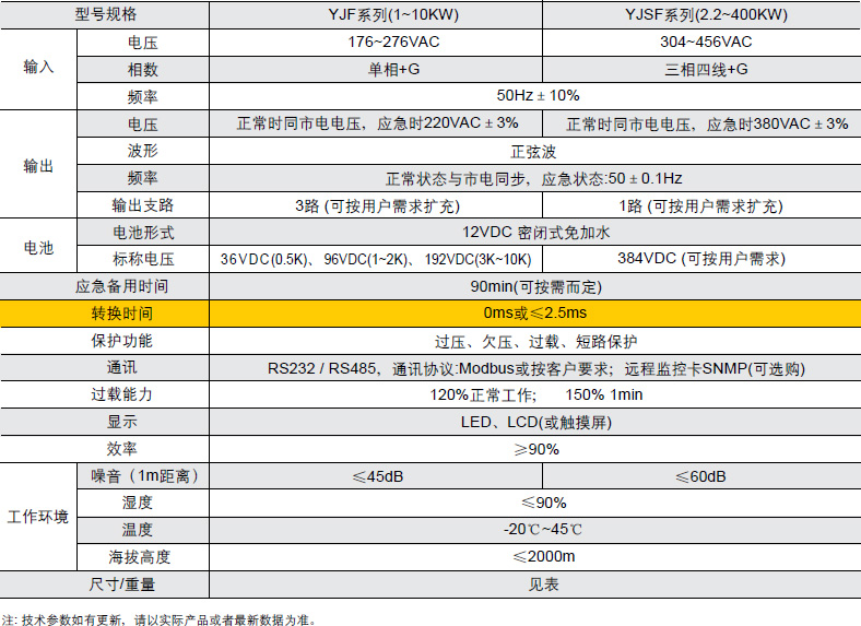 YJF: 0.5、1、1.5、2、3、4、5、6、7、8、9、10kW等