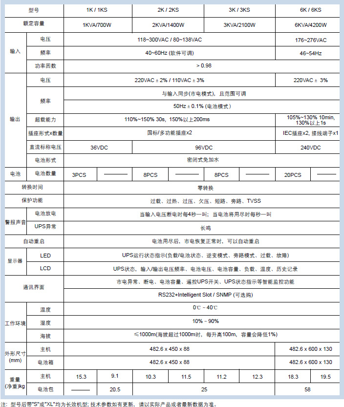 韦德NGR、GR系列机架式UPS,是纯在线式UPS,容量包括1KVA至6KVA。与在线互动式或后备式UPS相比,在线式UPS能够为负载提供*佳的电源环境,无论从稳压范围、频率范围、输入杂讯的滤除,乃至市电模式与电池模式零转换时间等方面考虑,都是*佳的UPS结构,特别是针对关键设备,如通讯系统和计算机网络系统,或是对电力环境要求苛刻的设备都提供更加灵活、可靠的电源保护。
